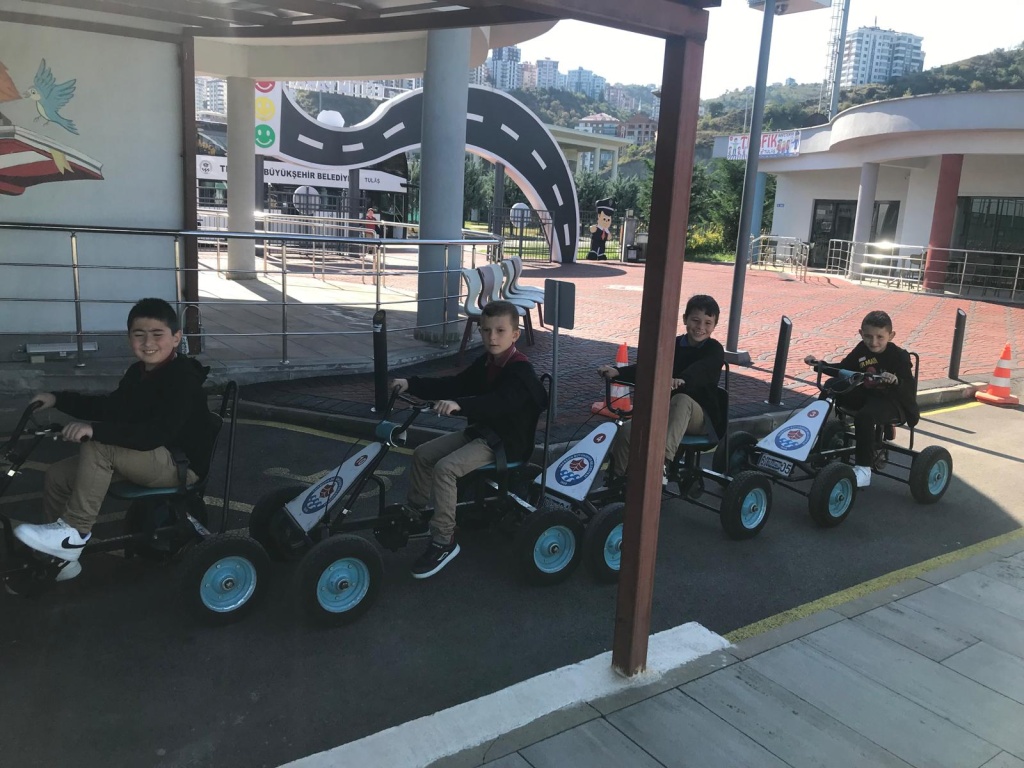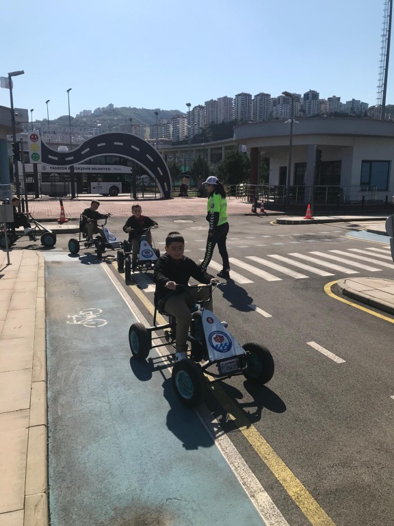 Trabzon Büyük Şehir Belediyesi ve Trabzon İl Emniyet Müdürlüğü başkanlığında düzenlenen etkinlik ile okulumuz üç ve dördüncü sınıf öğrencileri Çocuk Trafik Alanına giderek hem eğlendiler hem de canlı olarak trafik eğitimi aldılar.